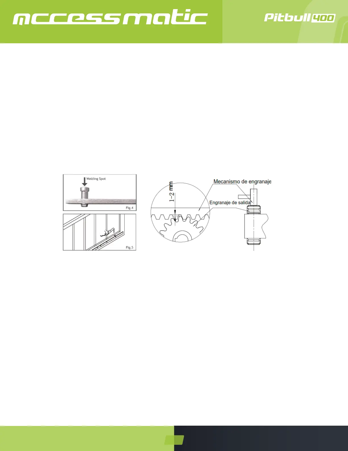 5) Cuando la guia esté debidamente instalado, asegúrese de que las cremalleras encajen correctamente con el engranaje.
