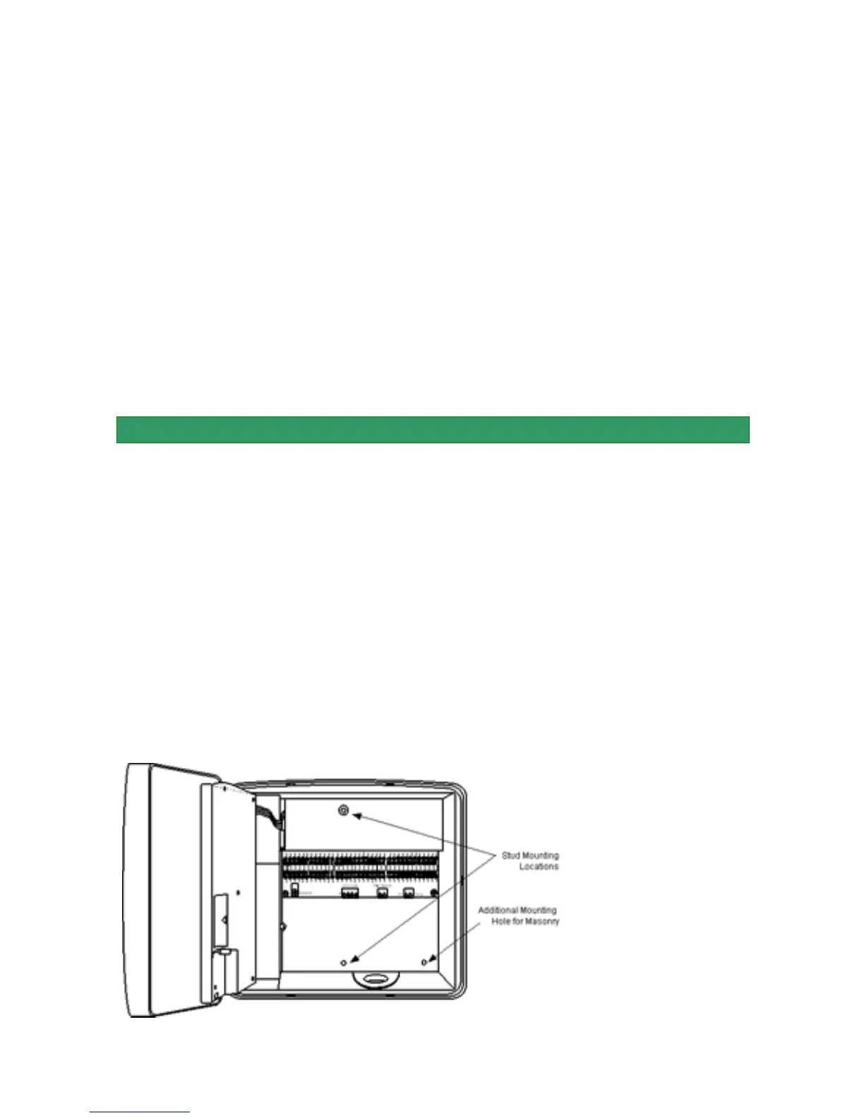 masonry mounting hole using appropriate wood screws or concrete anchors (not