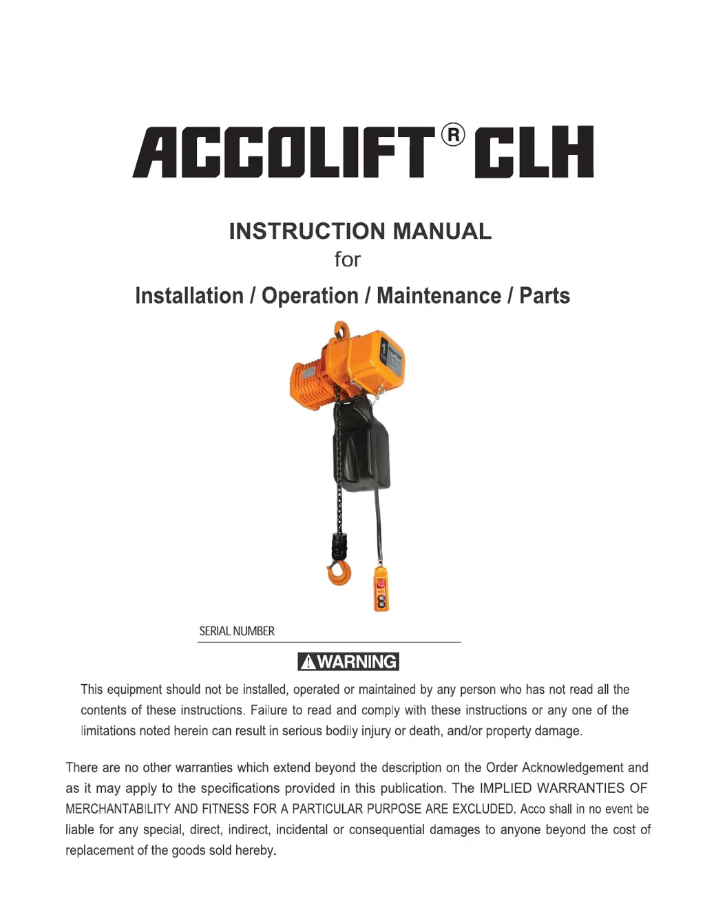 If your ACCO Brands Chain Hoist isn't working, first ensure the emergency stop button is deactivated. Next, check that the main switch is turned on. If the issue persists, the push button contactor may be faulty and require replacement.