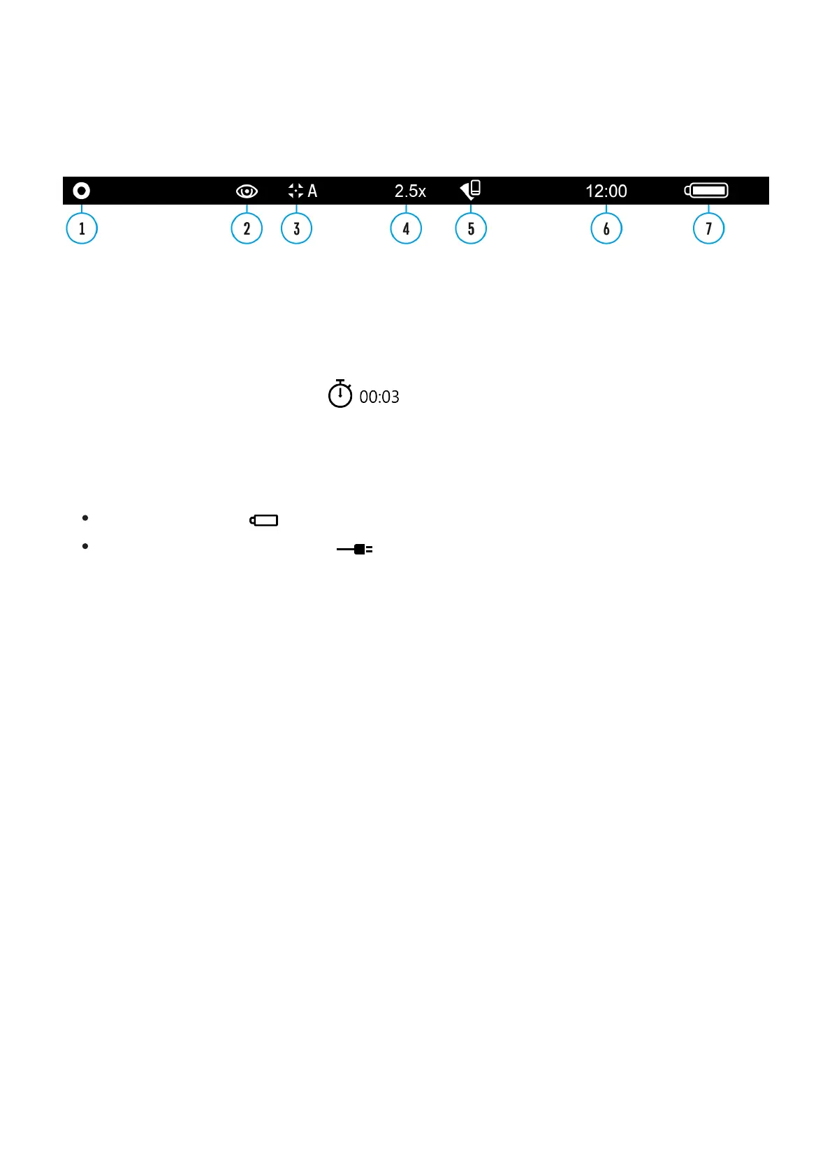The status bar at the bottom of the display shows current operating statuses via icons,