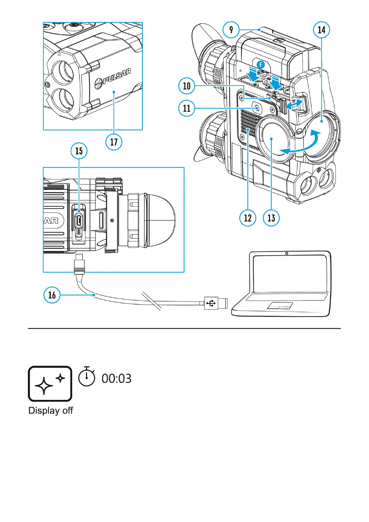 Display off" with a countdown. Pressing & holding the button down for the duration of