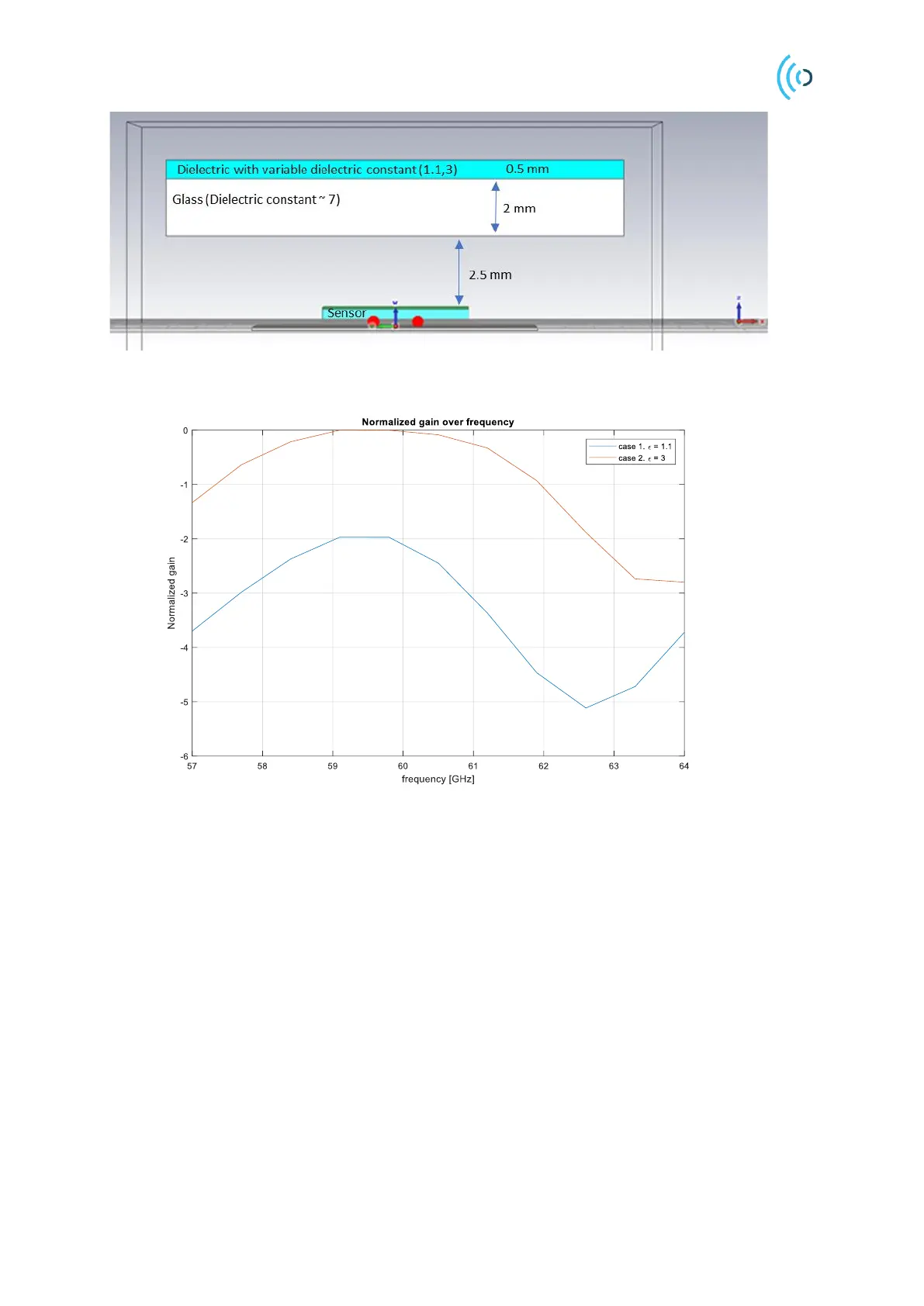 Figure 21. Normalized antenna gain (Tx or Rx antenna gain) where the matching layer dielectric constant is set to 1.1