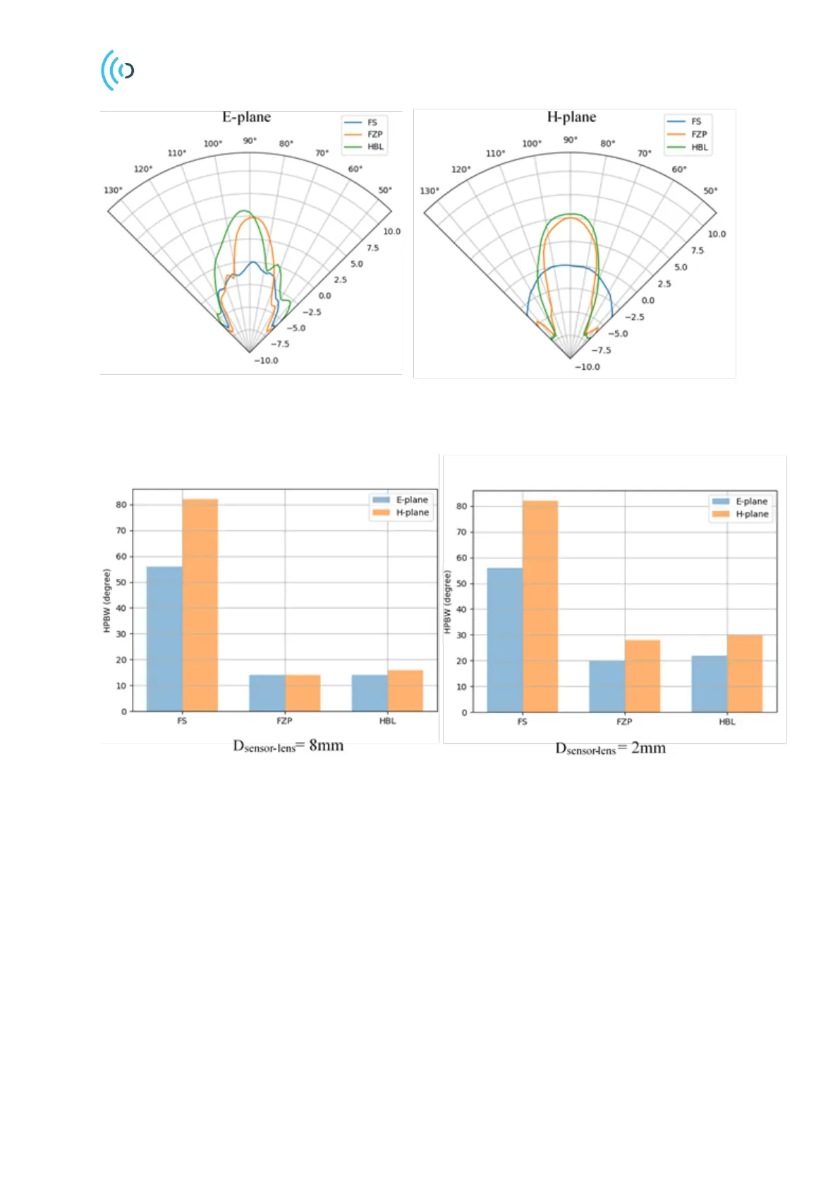 Figure 28. Half-power beam width for the FZP and hyperbolic lenses placed at a distance from the sensor of 8 mm