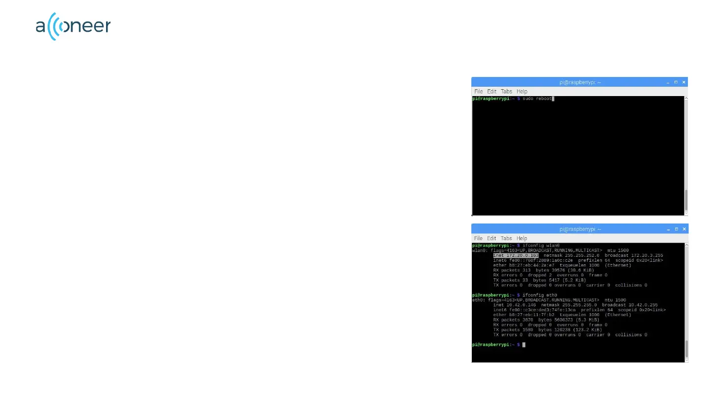 • To reboot the Raspberry Pi, type sudo reboot in the
