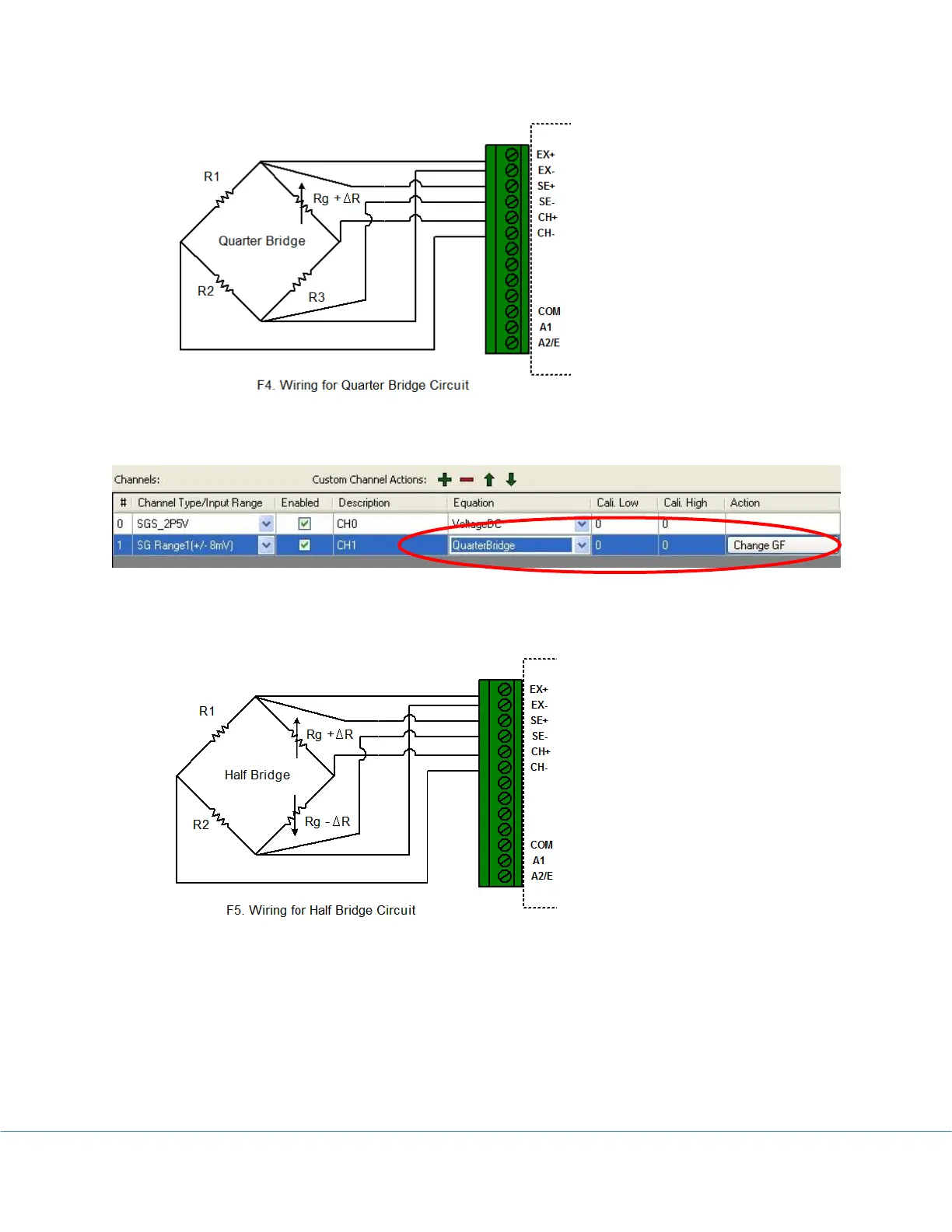 “QuarterBridge” equation and click “Change GF” to change the Gauge Factor.