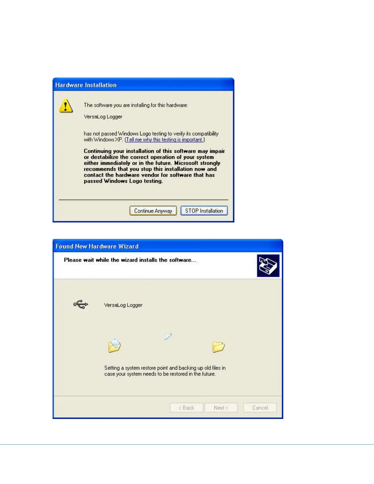 In the following message dialog, click "Continue Anyway" to continue with the installation: