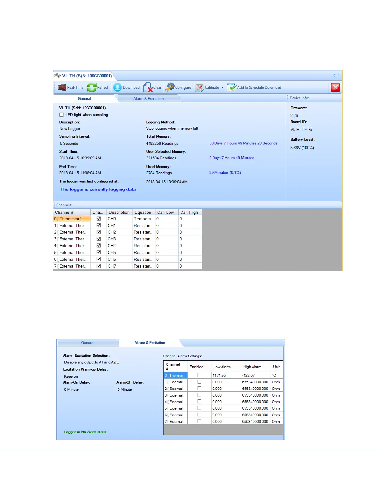 “Alarm & Excitation” tab page caption, the following page will appear: