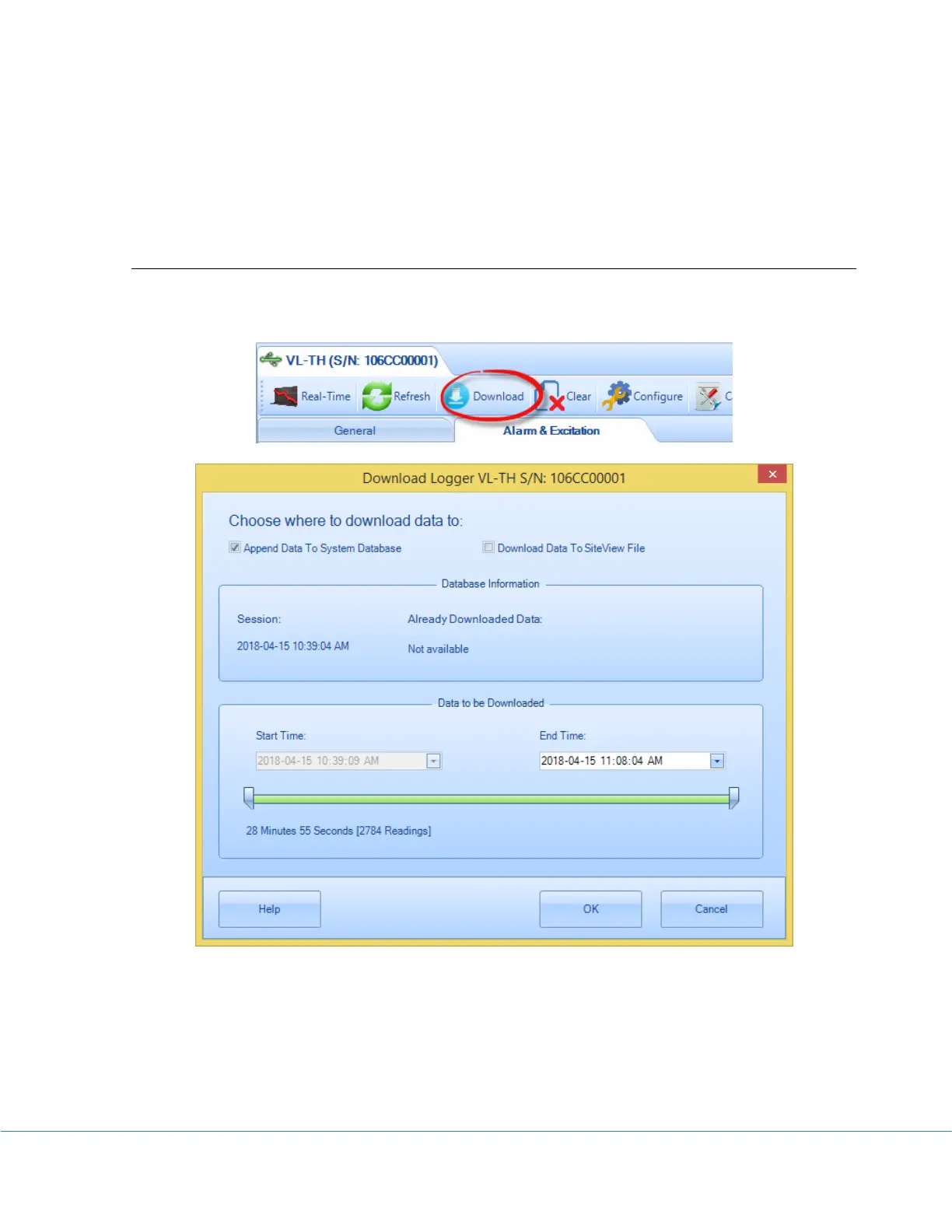 Started from Site View 3, data can be downloaded to the system database. Each data logger has