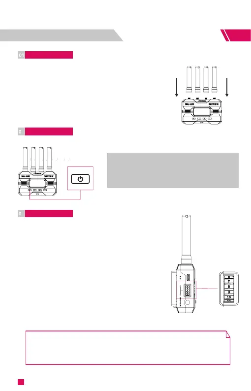 1. Install the antennas as shown in the picture.