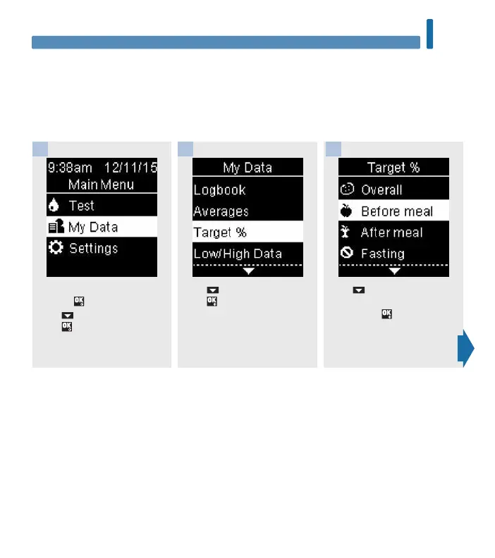 Target Percent (%) allows you to view the percentage of your Overall, Before meal, After meal, Fasting, and