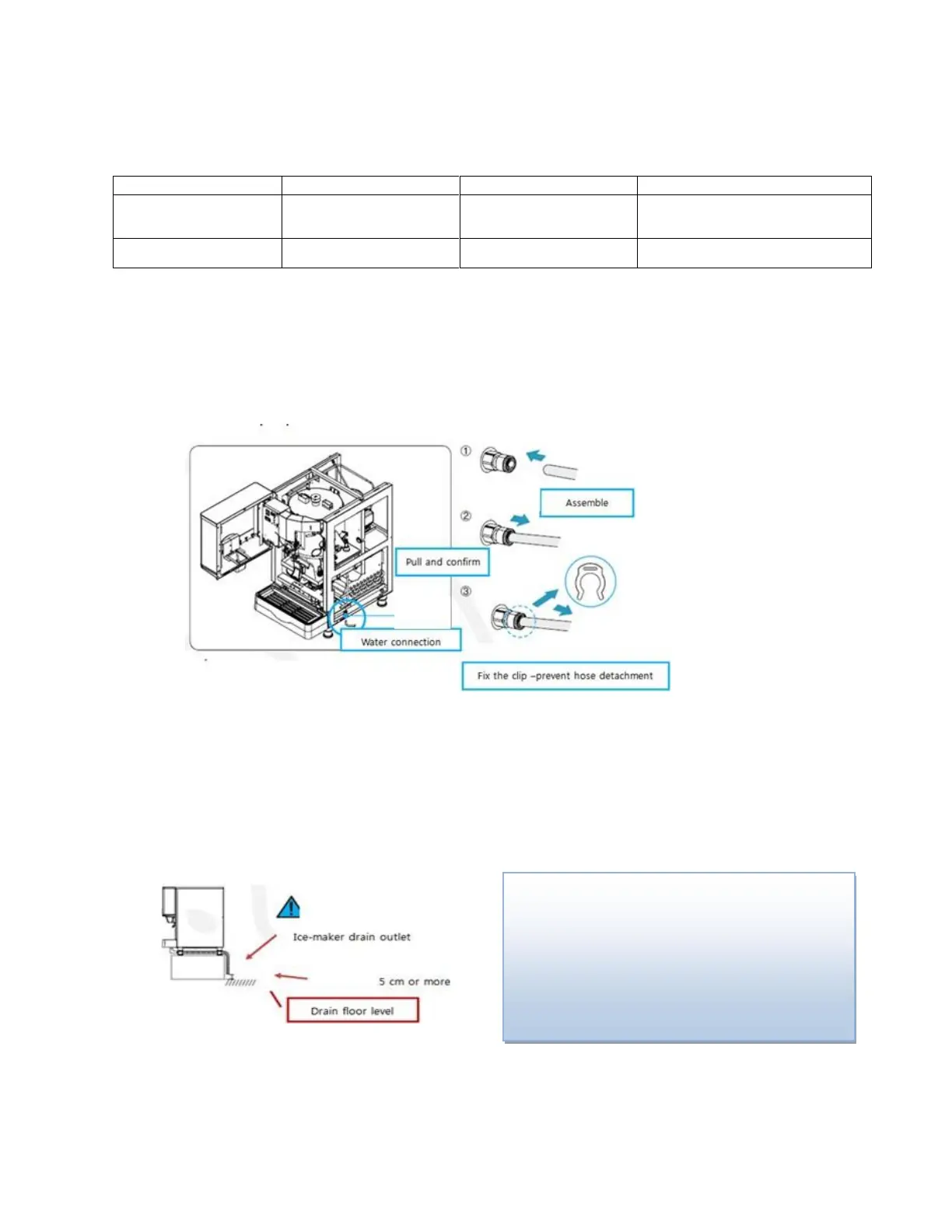 Please connect a hose with an inner diameter of Φ20mm or more for the ice making drain hose and the drain