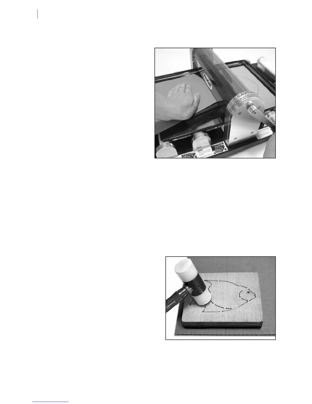 as laminated paper. To rough up roller, roll die back and forth through machine repeatedly without paper