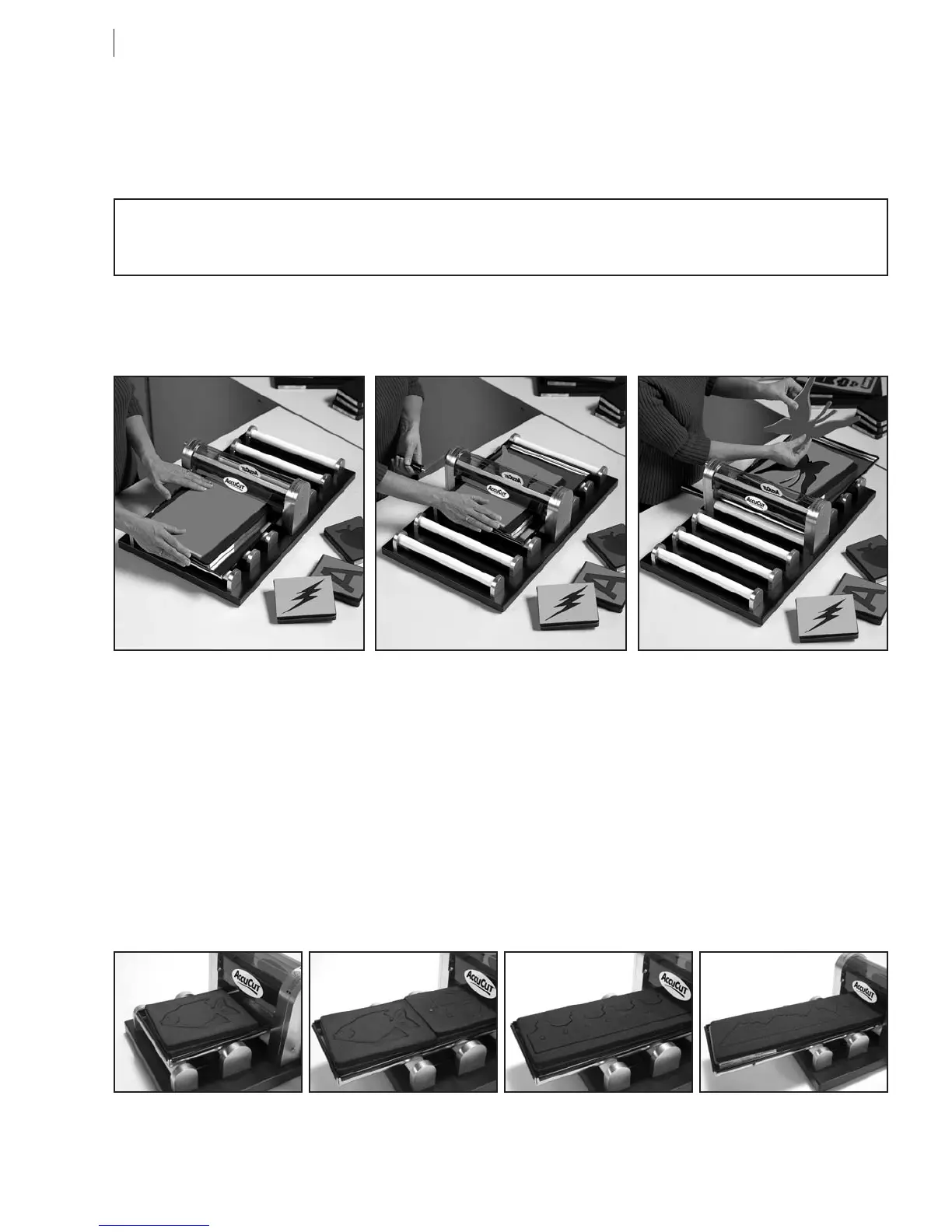 instructions! (See page 3 for location of sticker.) Here’s how the AccuCut machine works…
