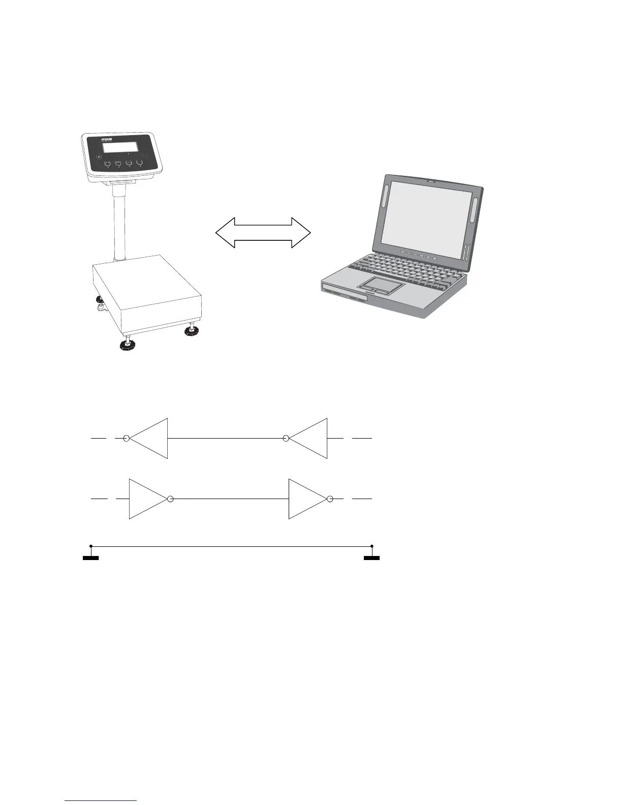 Diagram for interfacing a computer or different peripheral device to the scale using RS-232 cable length up to 15 m.