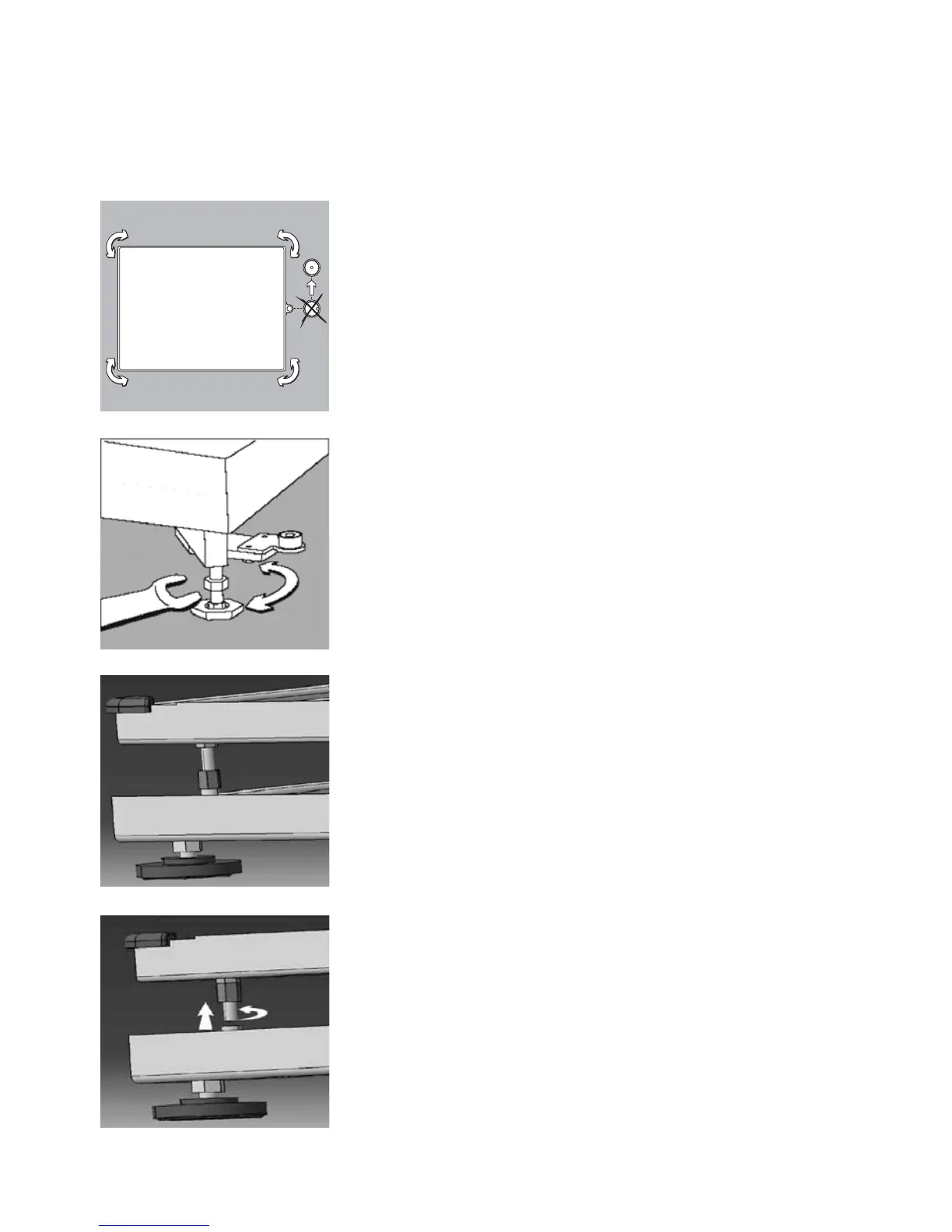 – Using the 4 foot screws, level the scale so that the air bubble is centered within