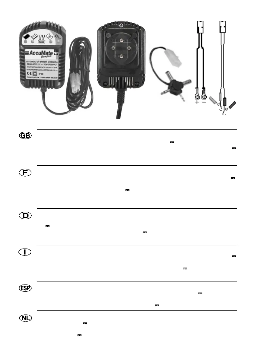 tant une recharge de 0,6A maximum en 12V =.Ne pas utiliser pour recharger d’autres types de piles