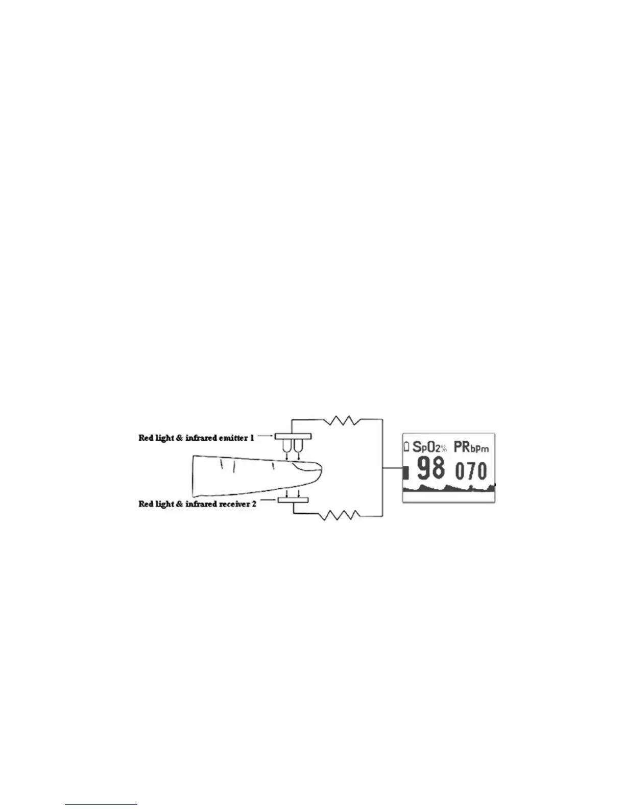 oximeter transmits light of two wavelengths only, red light (wavelength 660 nm) and