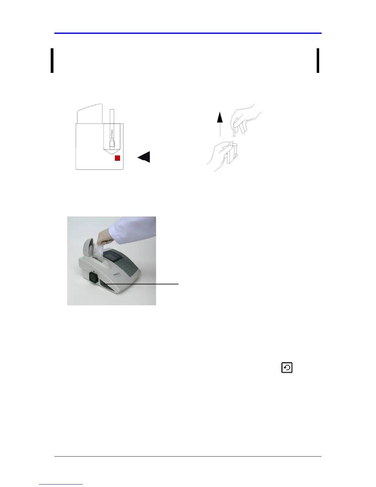 Open the cover. Using the finger grip, insert the assay device into the assay