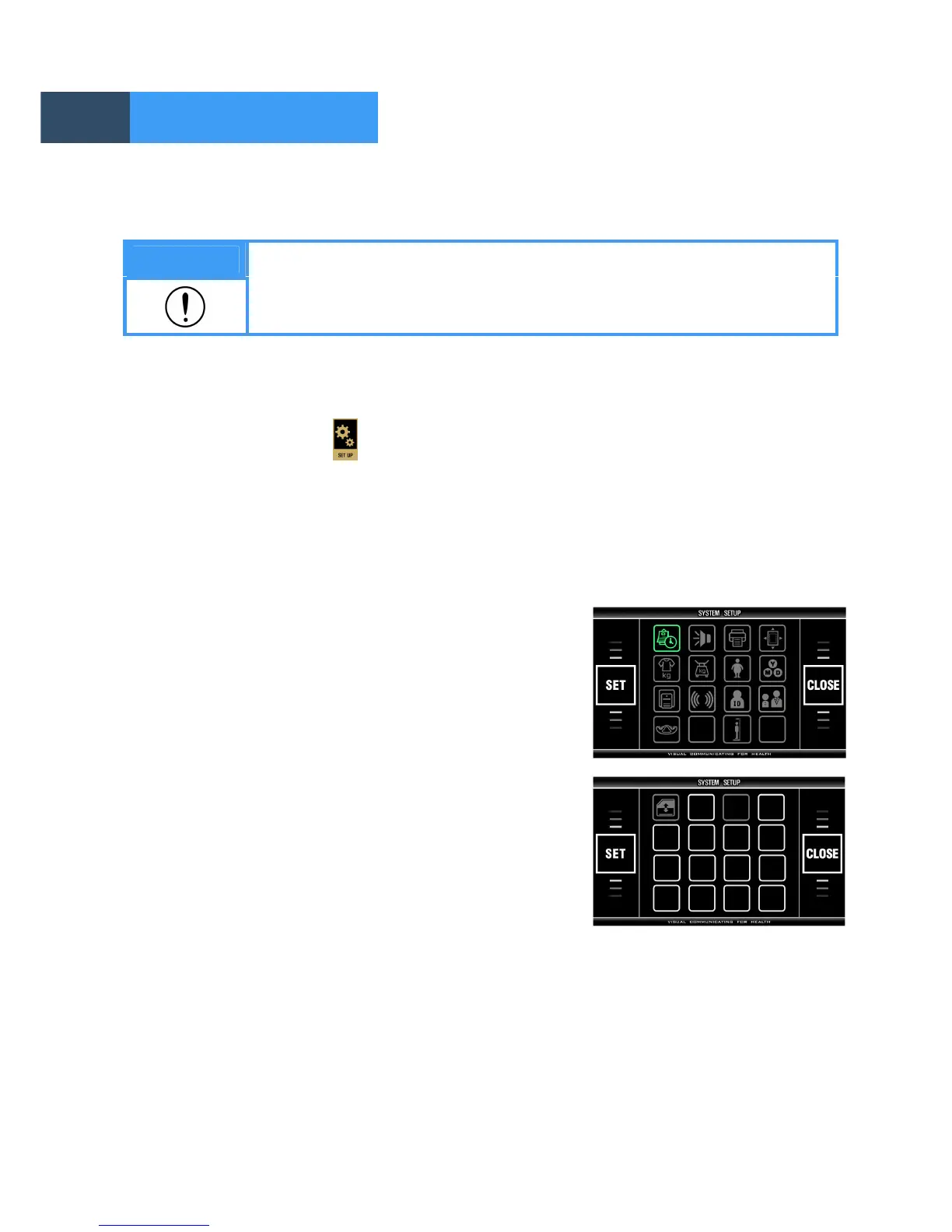 ‘SYSTEM SETUP' allows the users to change the setting of operational parameters.