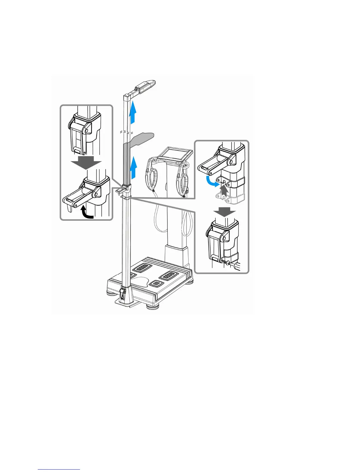 Lift up the fixing lever located at located at the middle of the height meter body to the arrow.