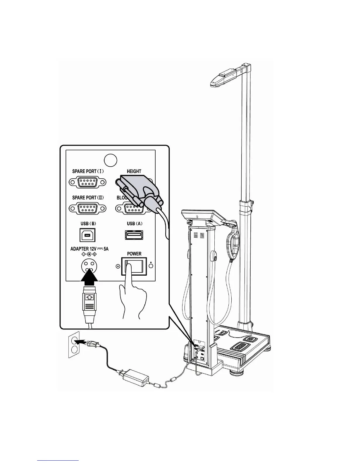 Connect a RS-232C cable to the “HEIGHT” port on the back side of the device.