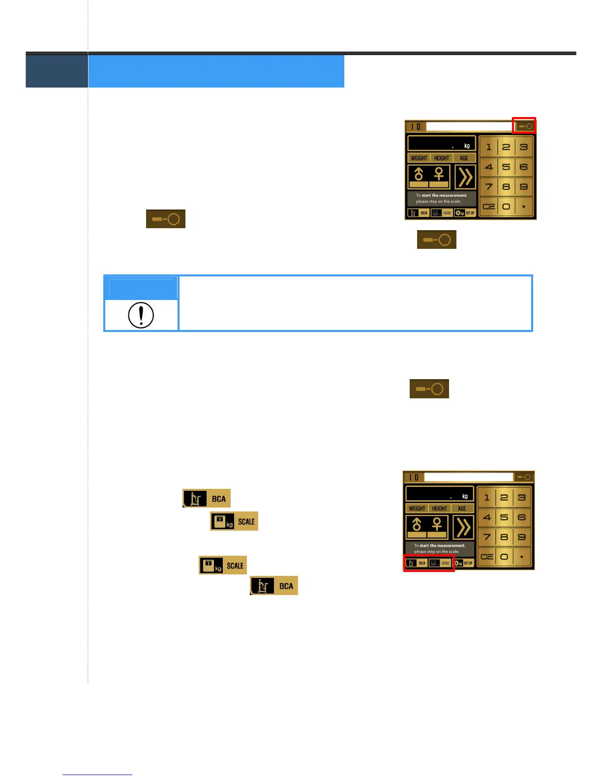 Users can select one of ‘SCALE’ and ‘BCA’ modes.