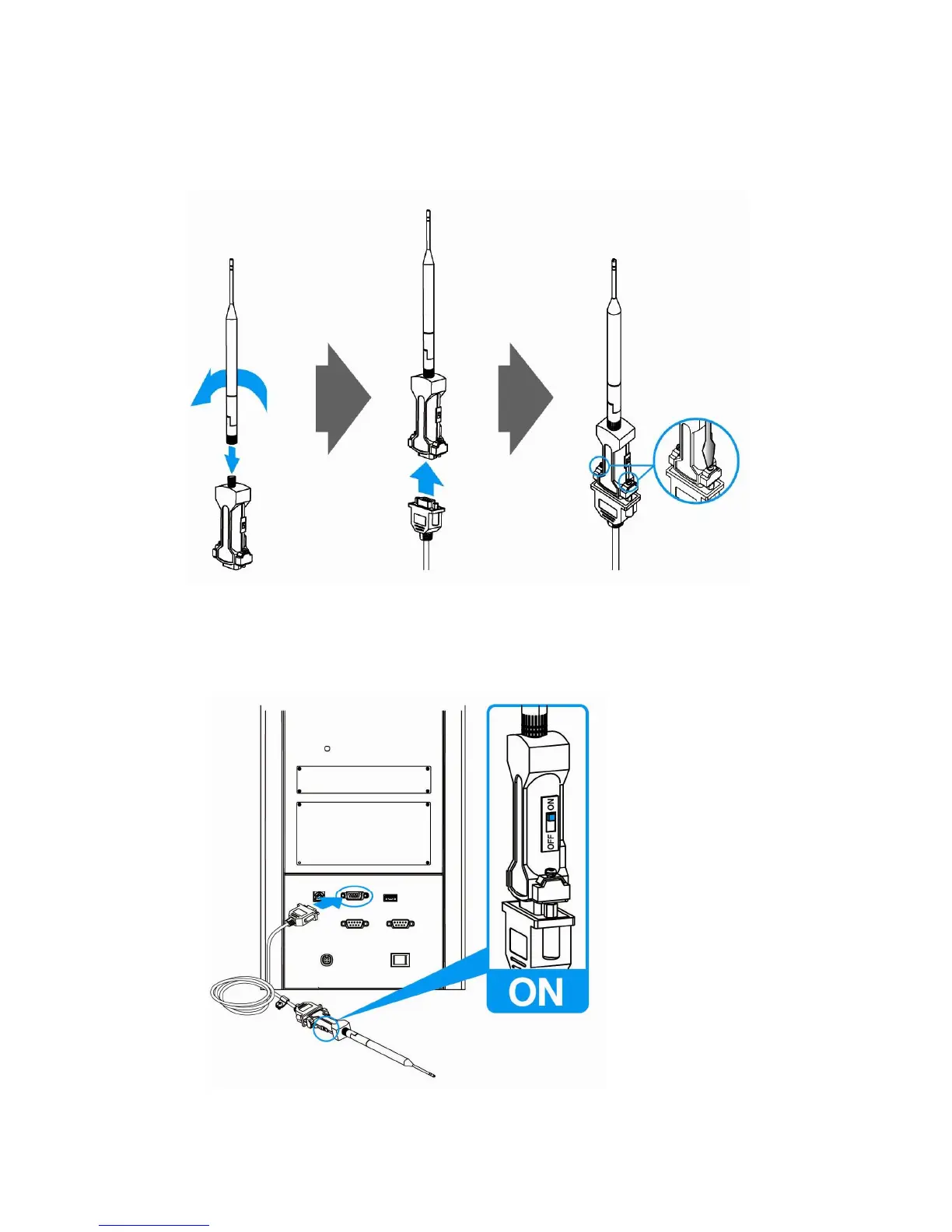 Connect the main body connecting cable to the reverse side of the antenna and fix the