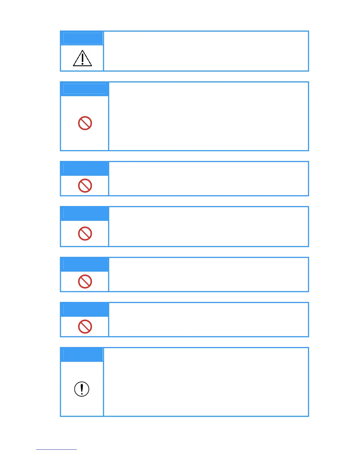 could result in electric shock or injury as well as adversely affect the
