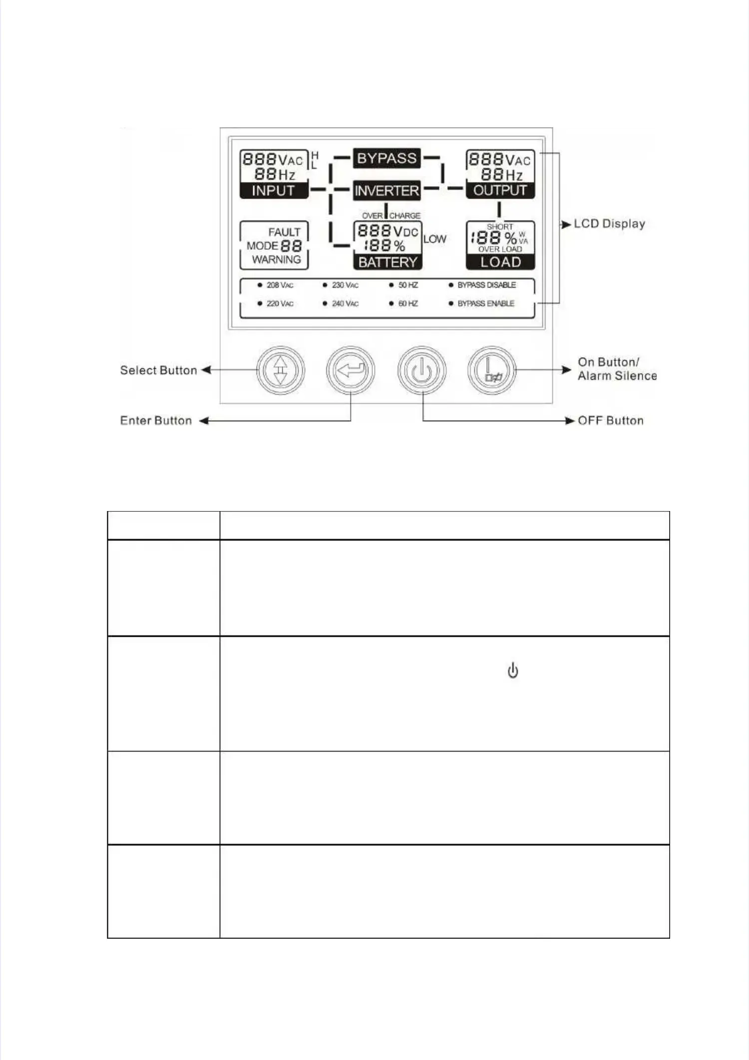 Bypass Bypass mode bmode by prey pressing OFssing OFF buttF button “on “ “, and “, and the inthe inverter verter isis