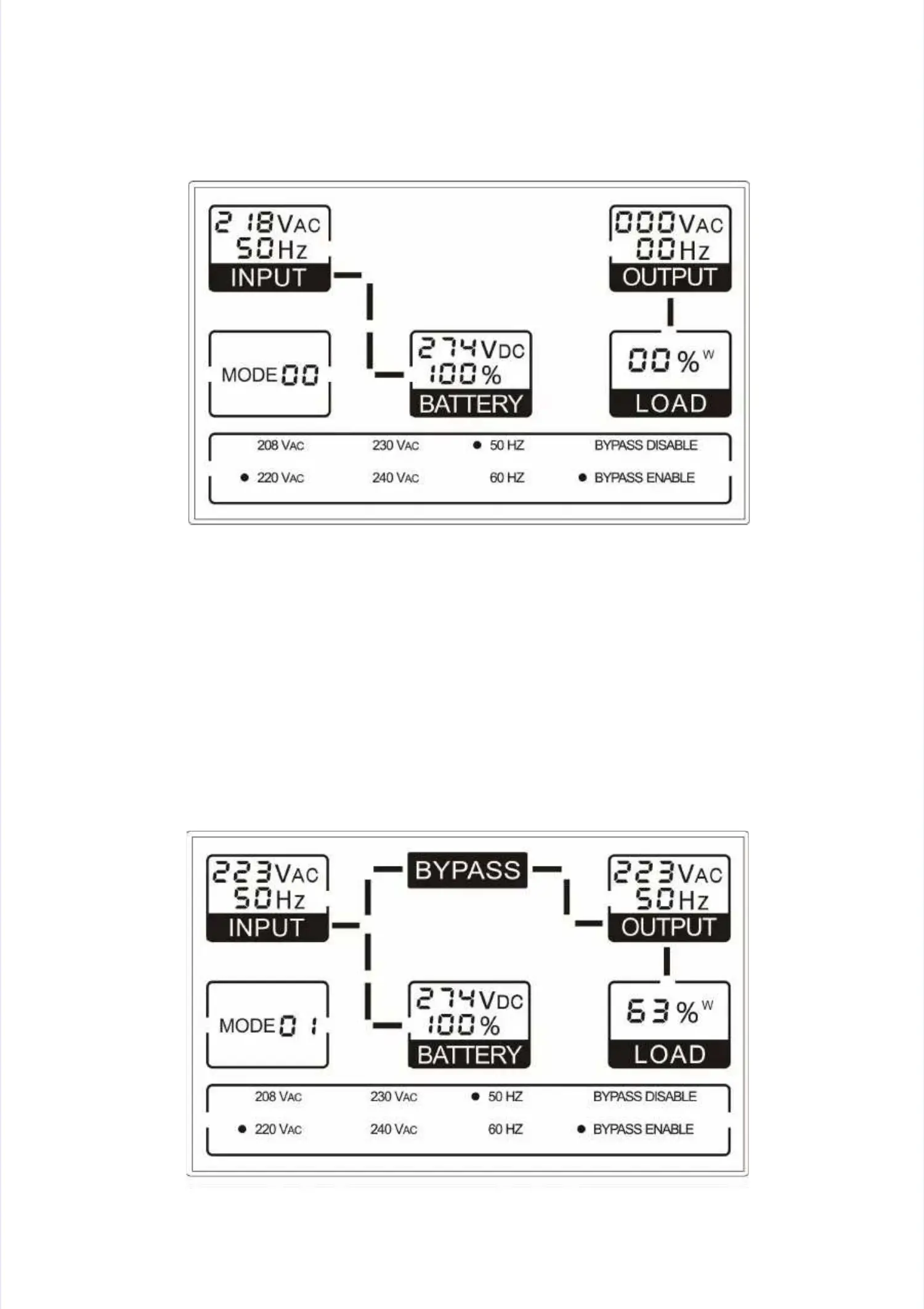 load could be displayed. The operating mode code of the UPS is “01”.load could be displayed. The operating mode code of the UPS is “01”.