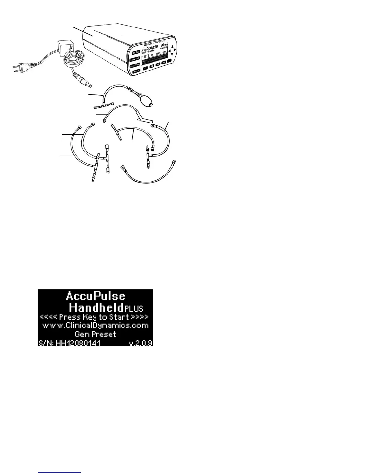 The AccuPulse Handheld initially shows a splash-screen indicating the device type, its