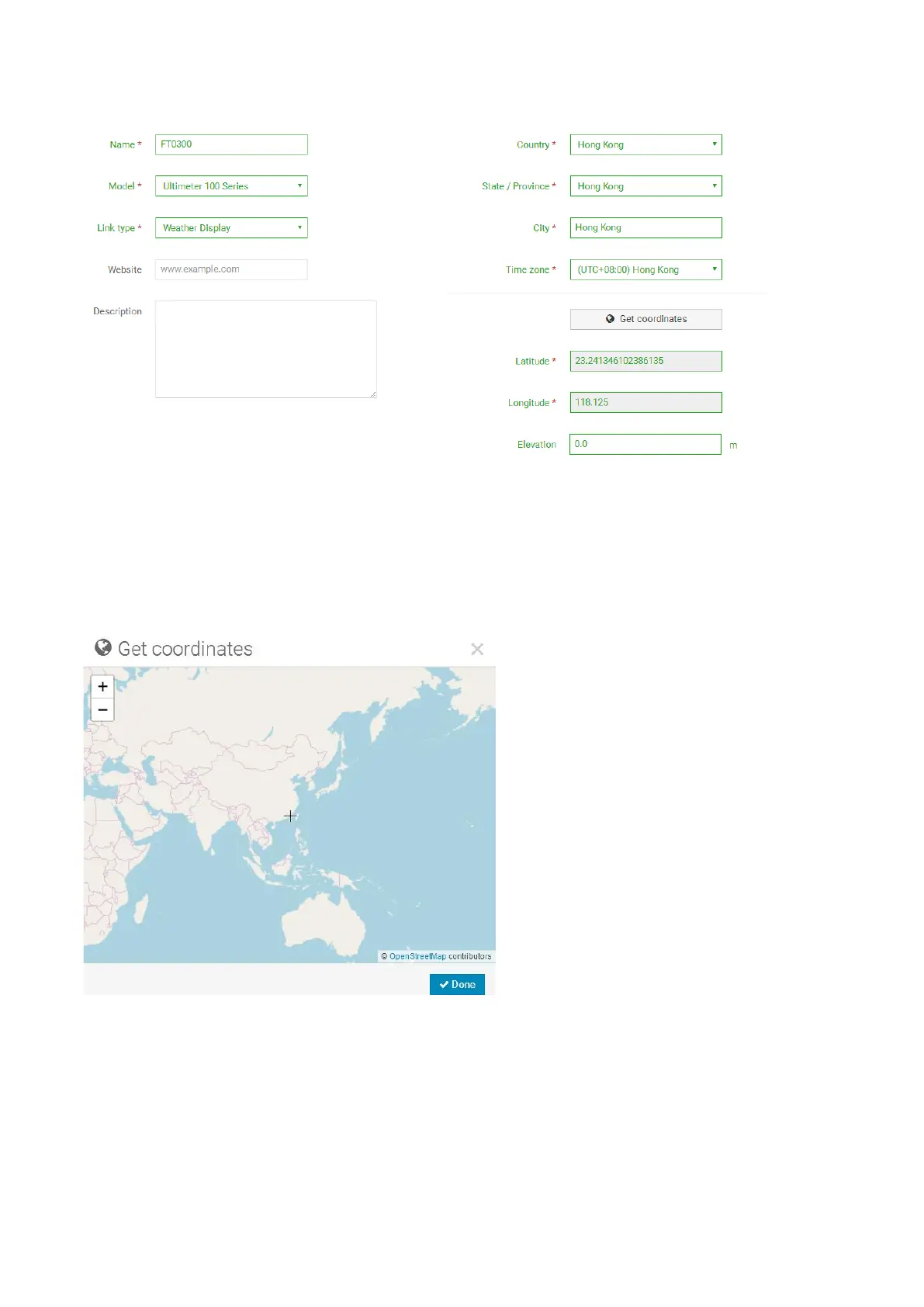 2) As shown below, click Get coordinates to identify your location of on the map, then click Done to confirm.