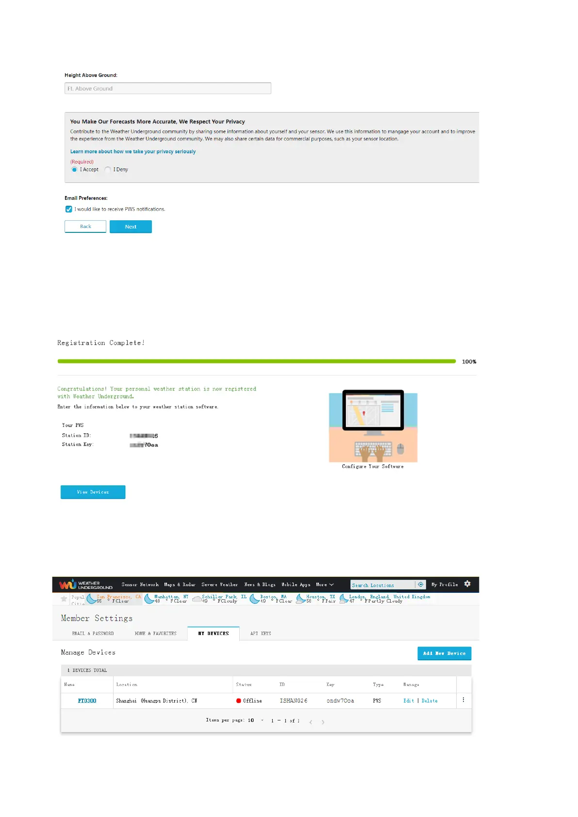 11) As shown below, after registering the host successfully, please record Station ID and Station Key
