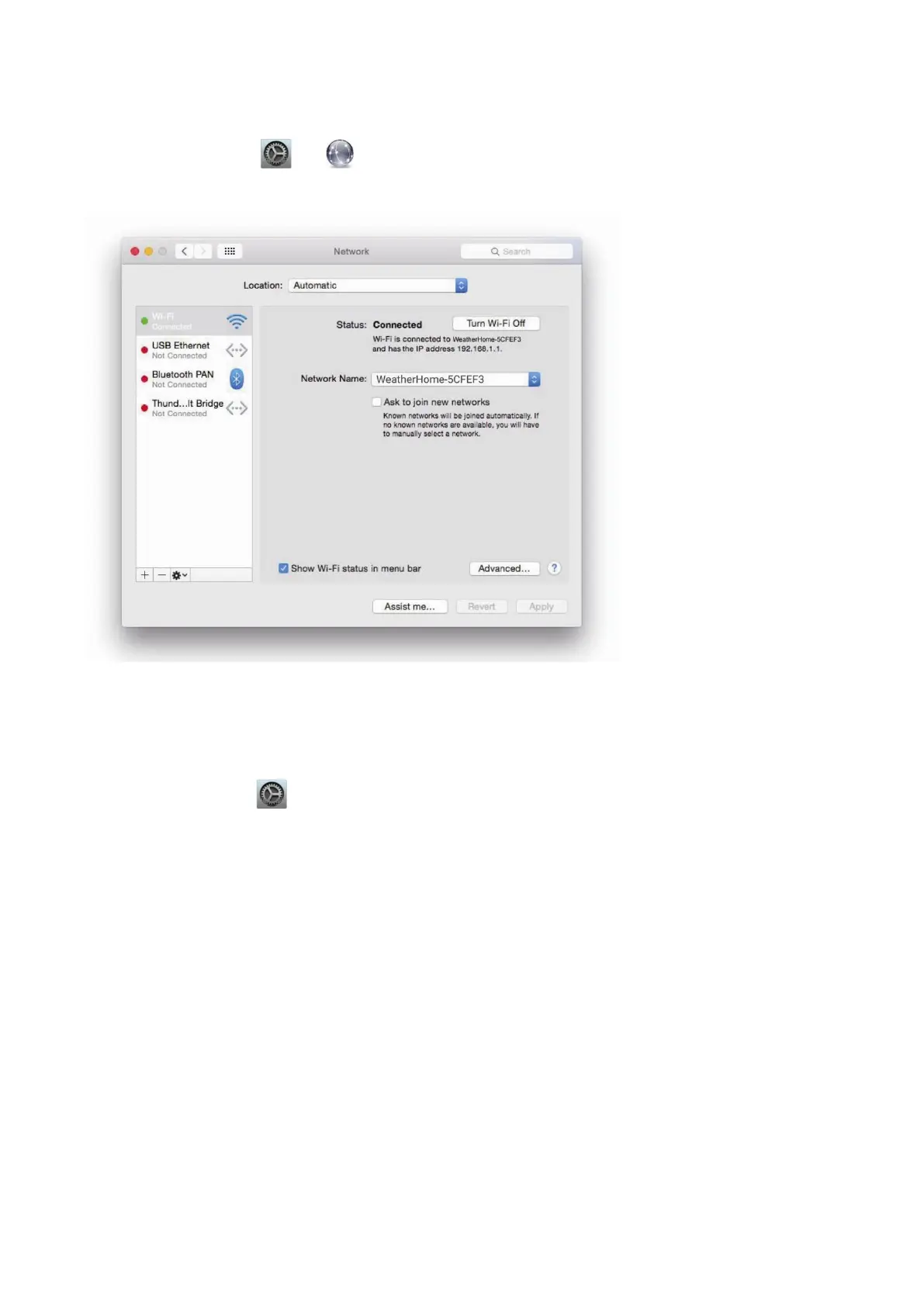 Choose the Settings icon and Network. Connect to the WeatherHome------ Wi-Fi network, as shown