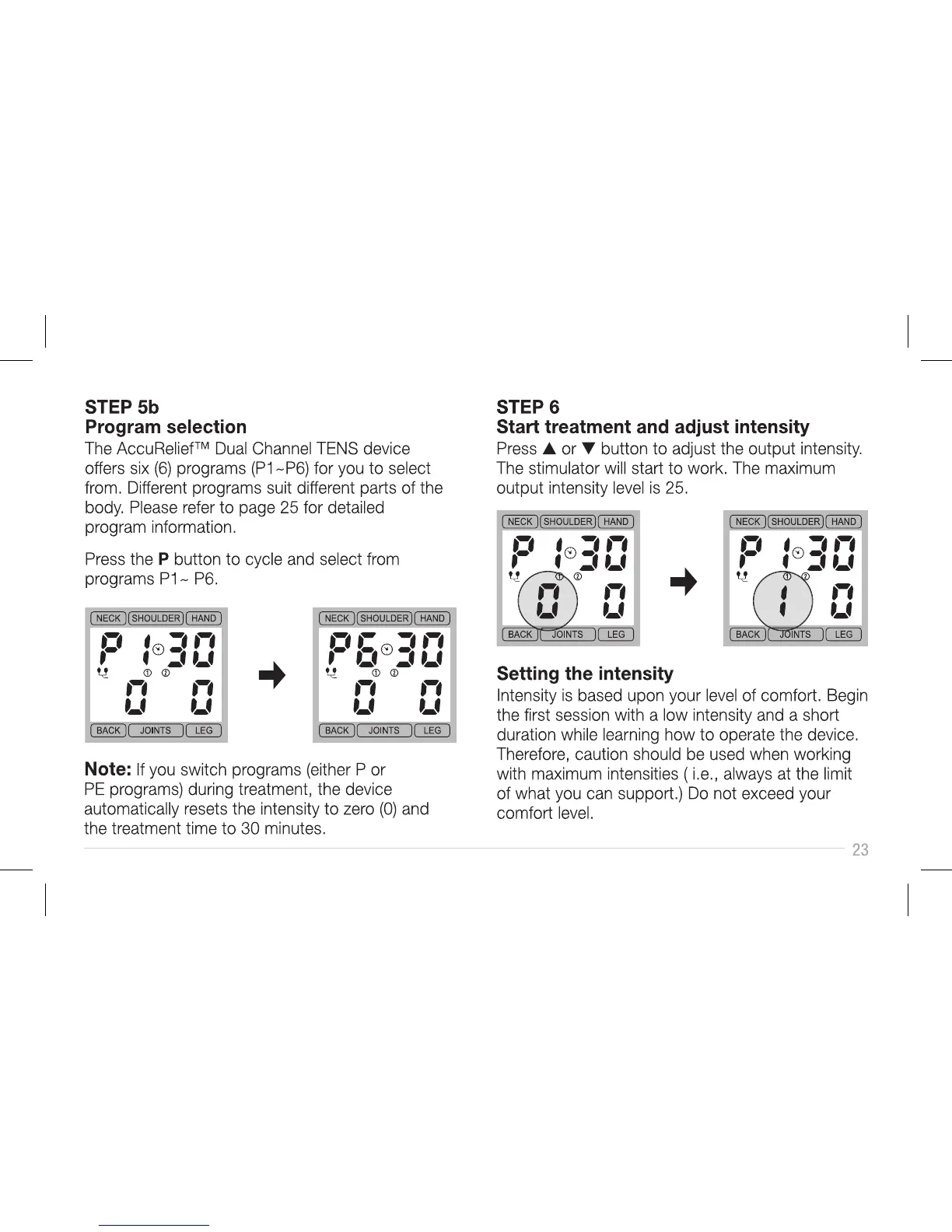 AccuRelief ACRL-3000 - Program Selection Details and Intensity Adjustment