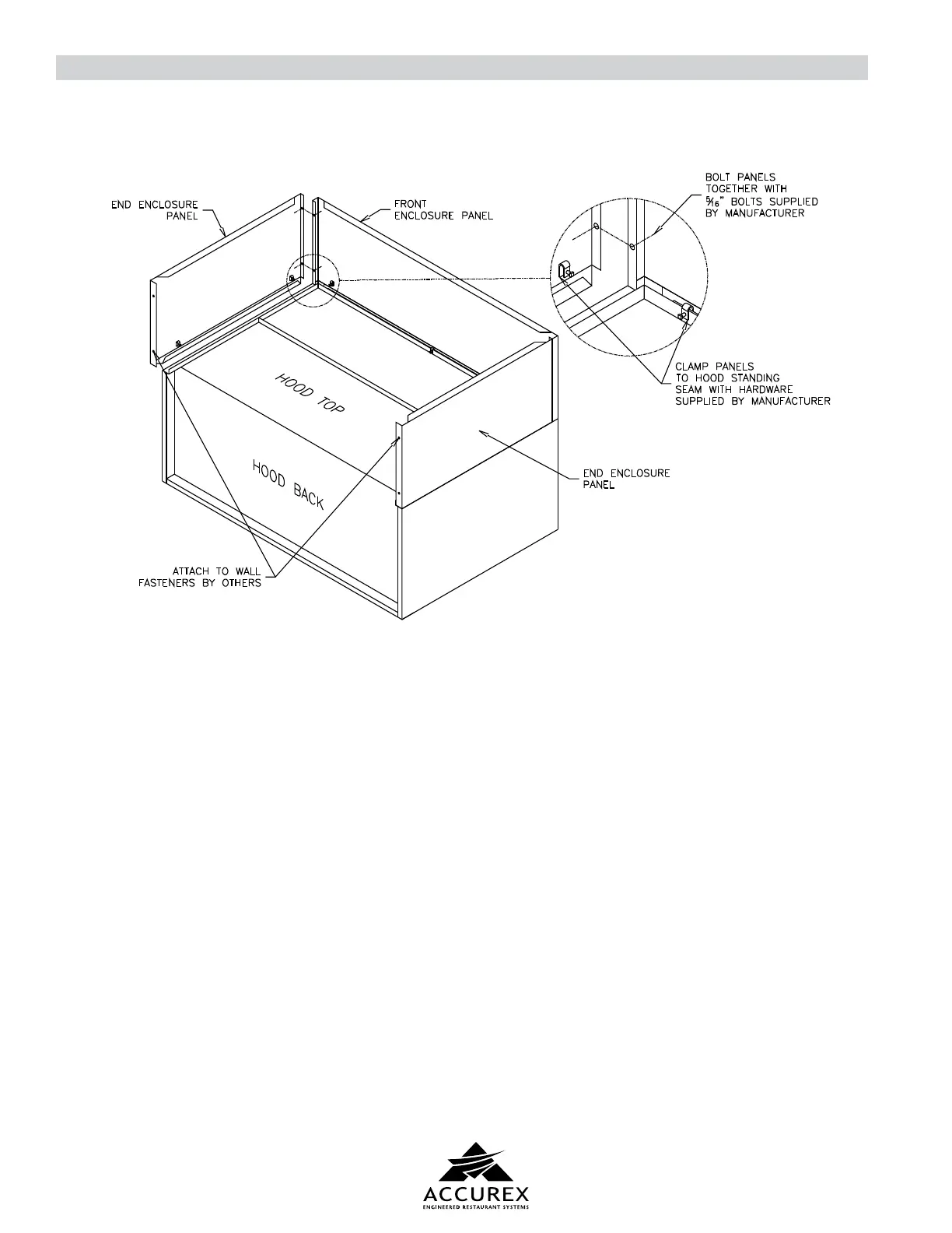 Before installing the enclosure panels, make sure the hood is hung in position with all the ductwork