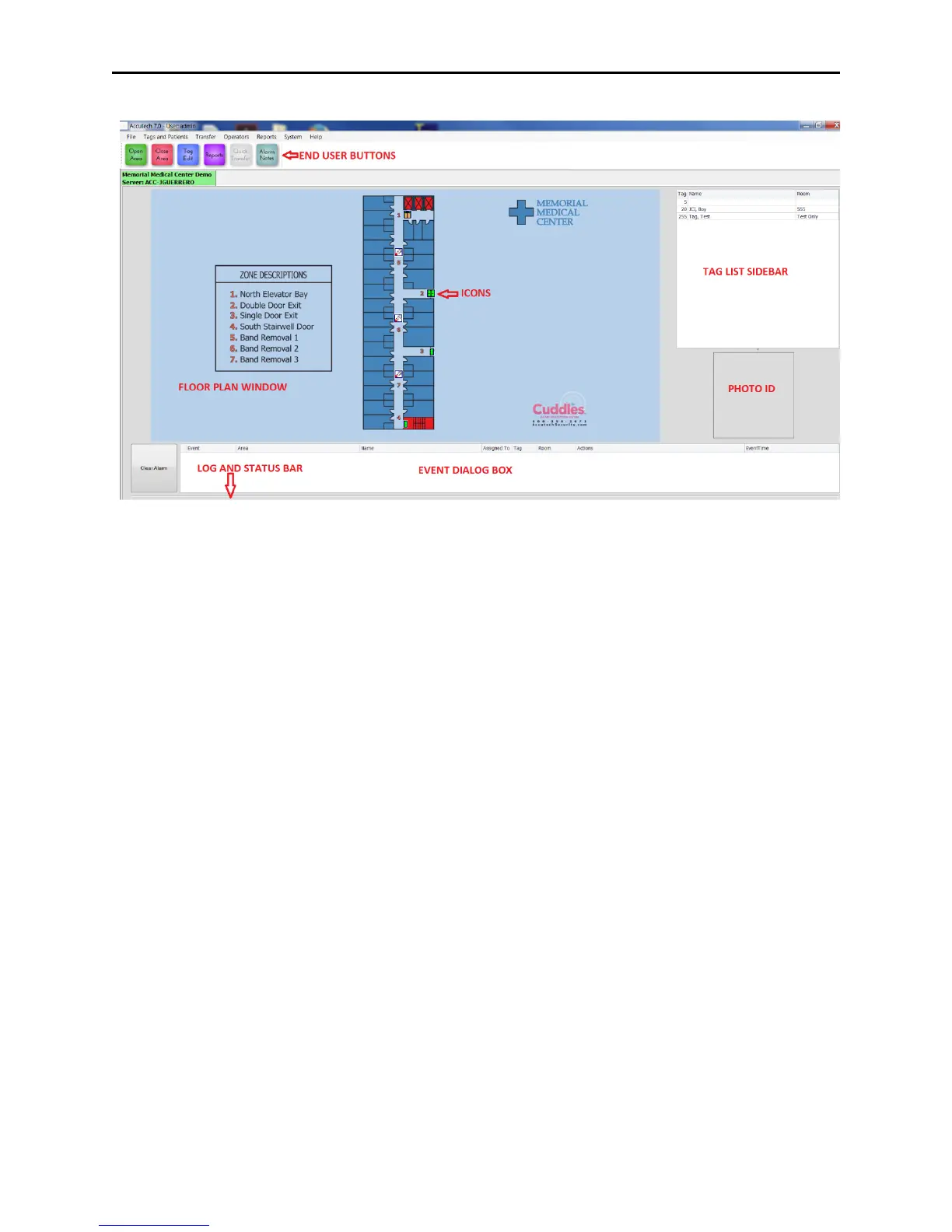 5. Event Dialog box – displays incoming alarm event information (user action required to clear)