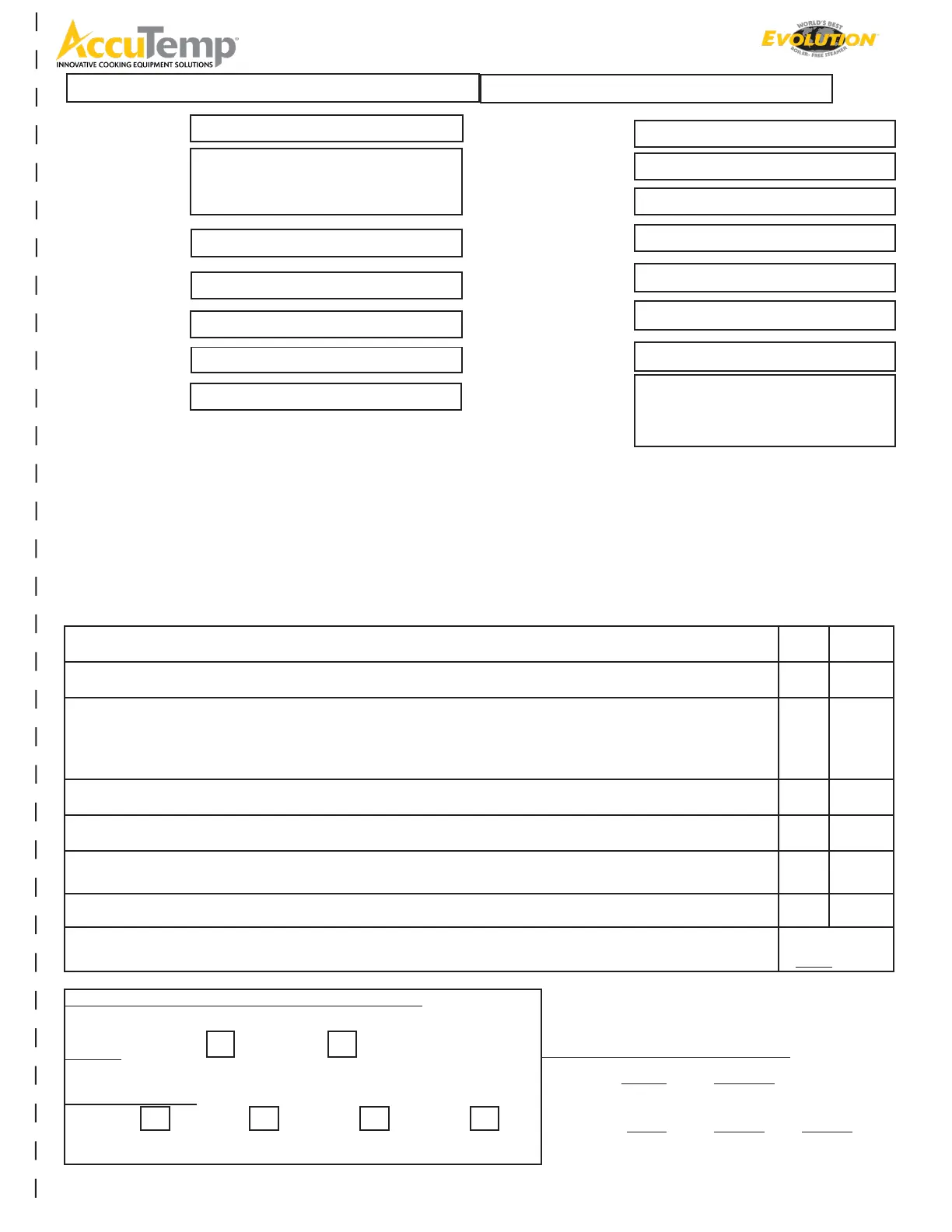 EVOLUTION Electric Steamer Start-Up Form