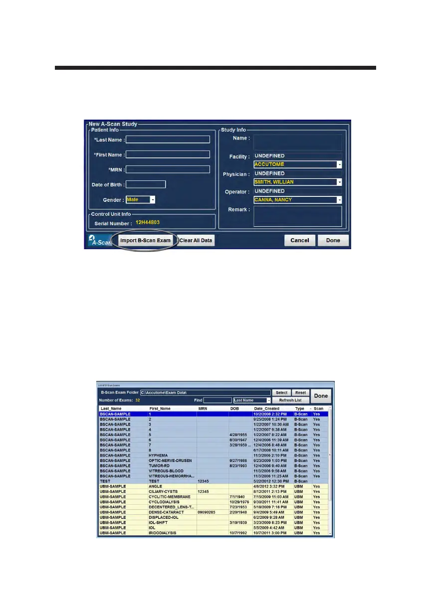 “Import B-Scan Exam”.