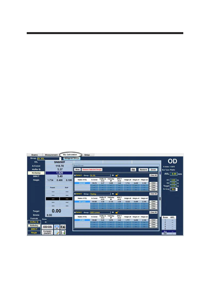 screen. The manage IOL groups screen is the only location within the Accutome