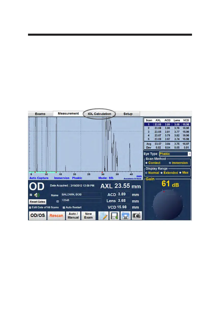 1. Click on the IOL Calculation tab, located at the top center of the display.
