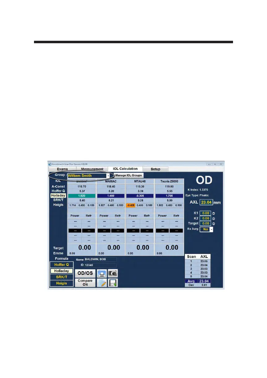 3. Select the IOL “Group” by opening the drop down window. Position the