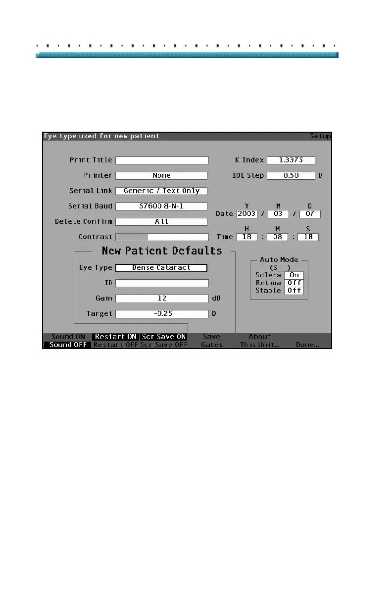 Accutome a-scan plus - Figure 51 more Settings - Setup Screen