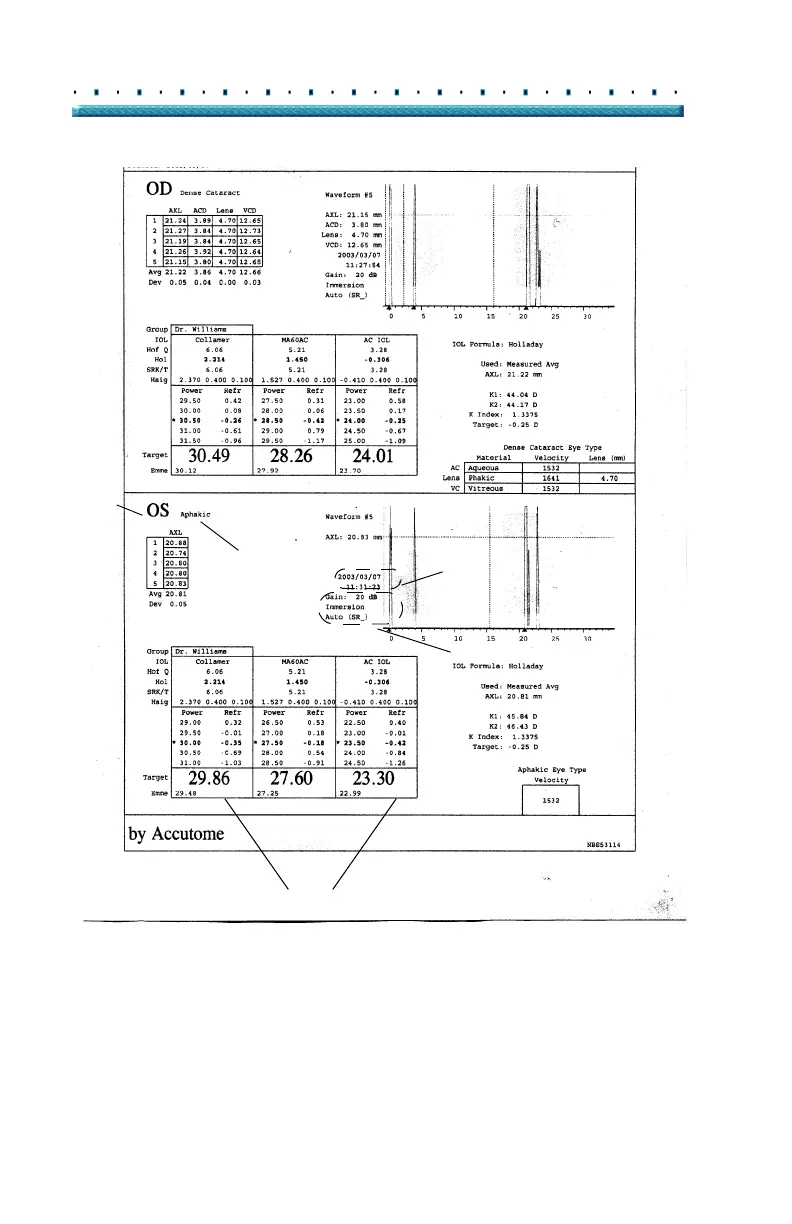 Accutome a-scan plus - Figure 160 Calculation Printout