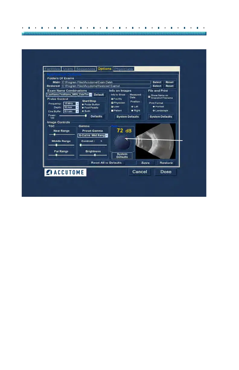 Accutome B-Scan Plus - Figure 60 Selecting Gain Adjustment