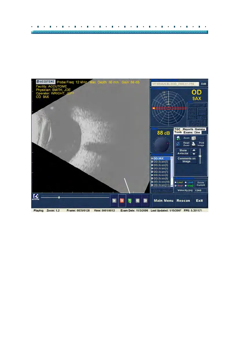 Accutome B-Scan Plus - Figure 115 Pausing the Scan Film Loop; Pause
