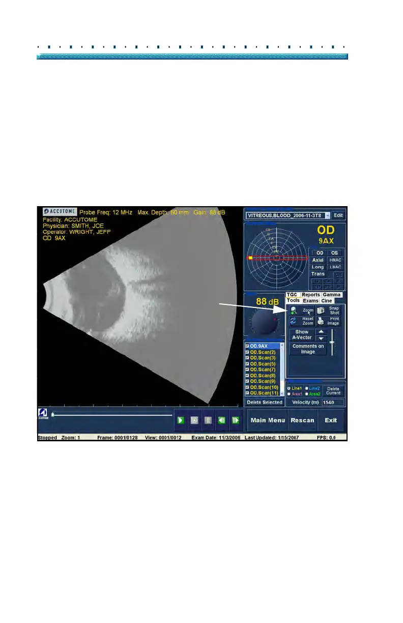expands the image and fills the B-Scan screen. Zoom