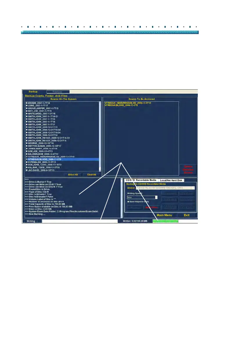 2. While the disc is burning the archive screen will