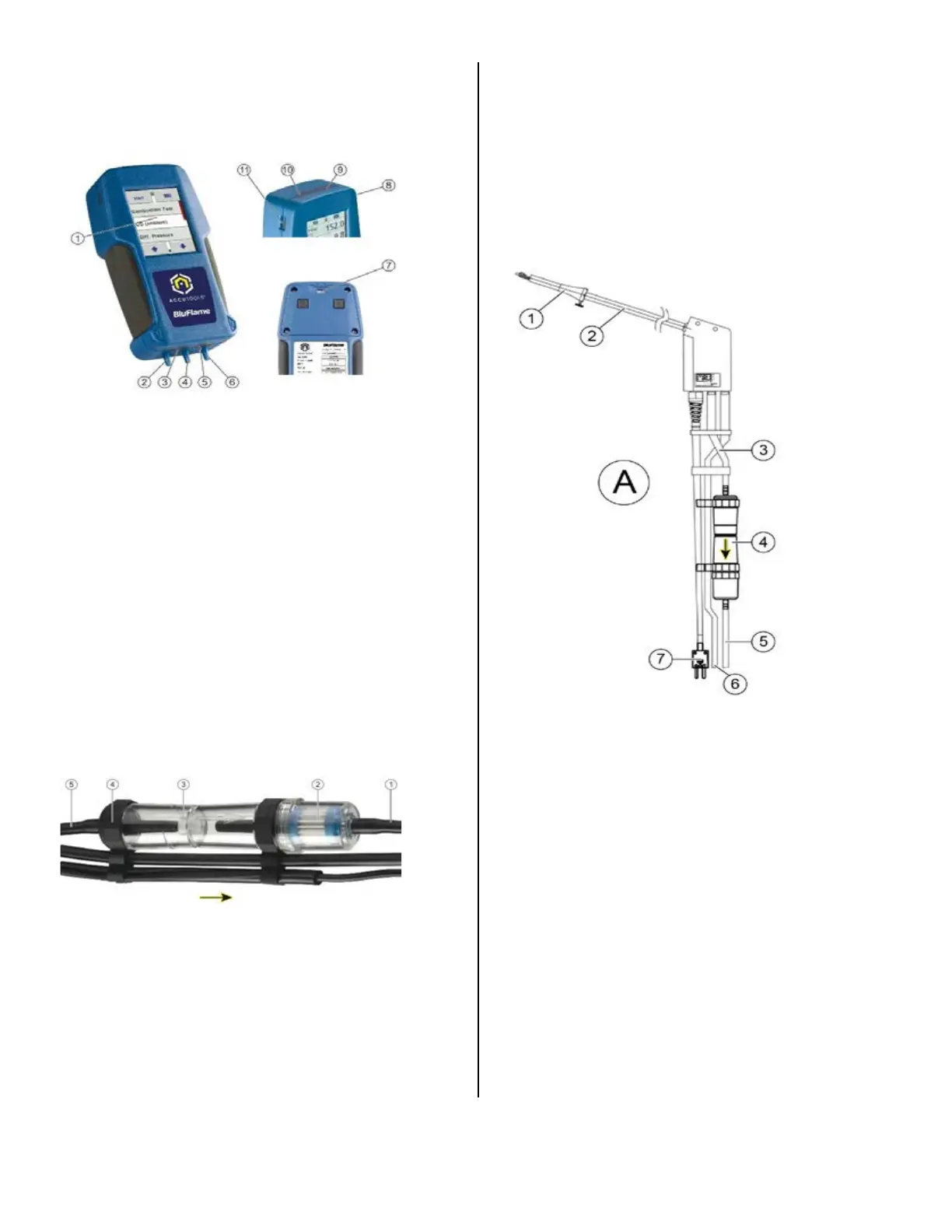 The arrow symbolizes the gases’ direction of flow towards the BluFlame.