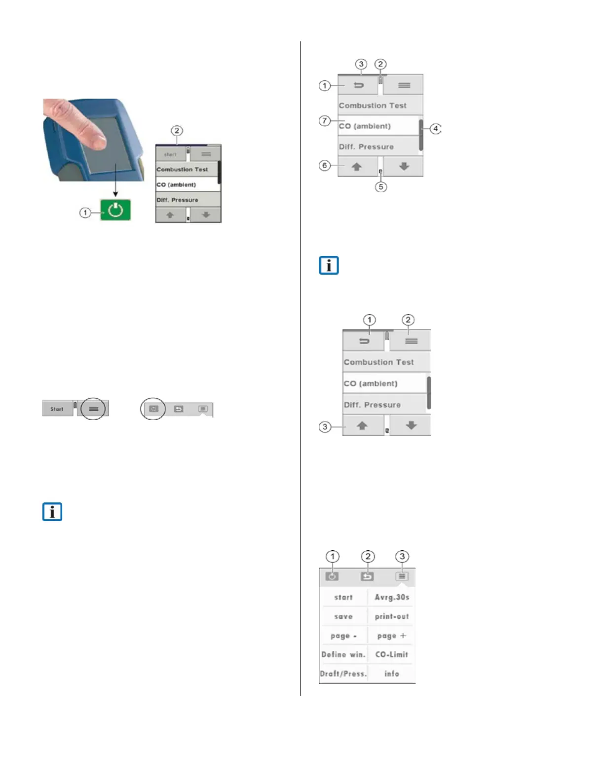 The various operating screens will